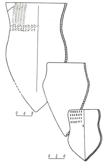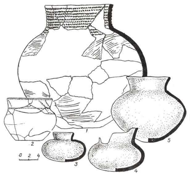 Рис. 112. Побутовий та поховальний посуд населення нижньомихайлівської культури: