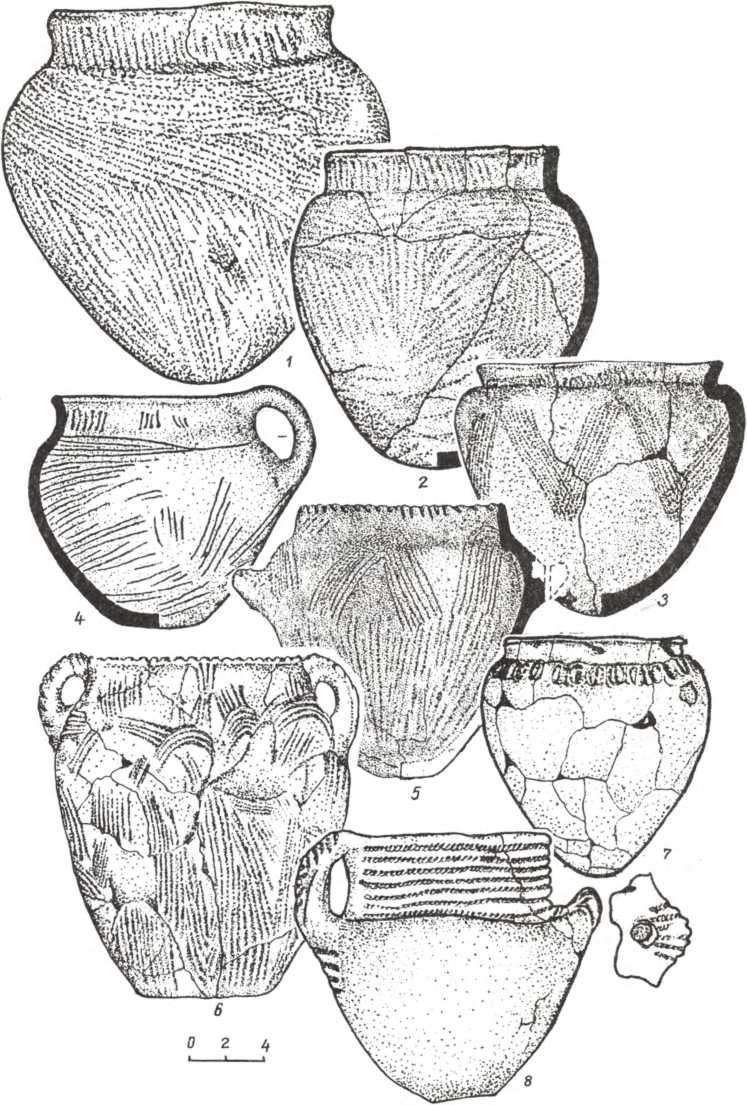 Рис. 118. Типовий посуд населення рєпінської культури: