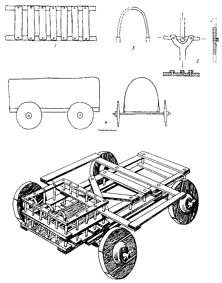 Рис. 119. Реконструкція возів доби ранньої бронзи: