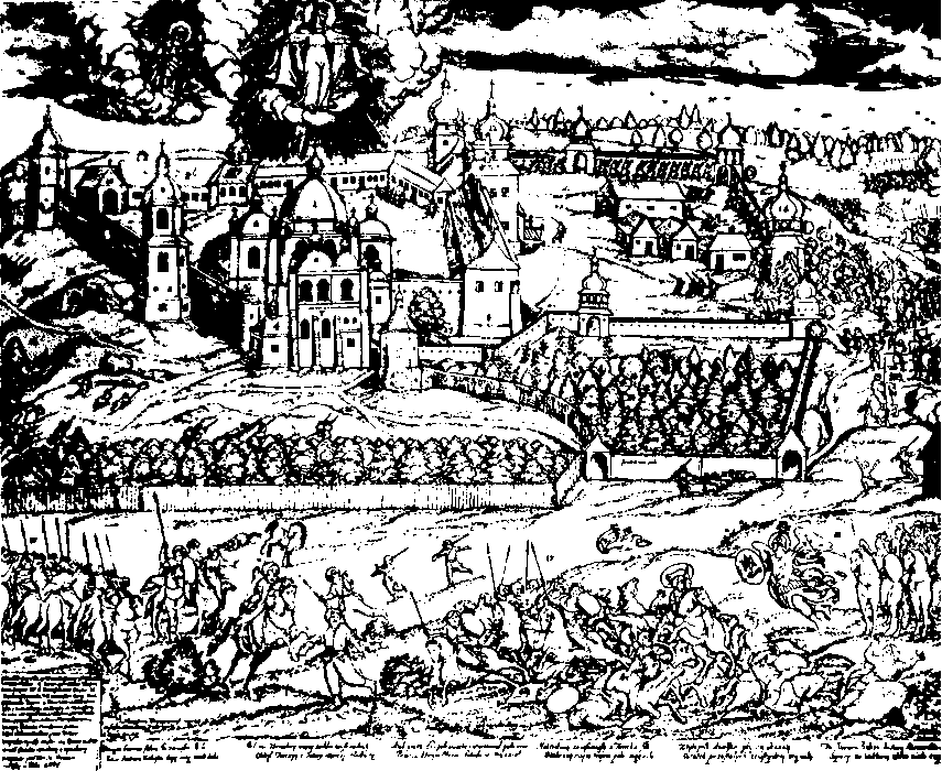 Осада Почаевской лавры турецкими войсками (1675). Гравюра А. Гочемского.