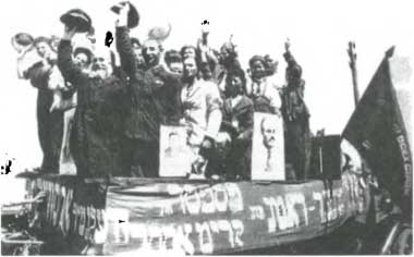 Члены еврейского колхоза близ Лариндорфа в Крыму по пути на предвыборное собрание (1938 г.)