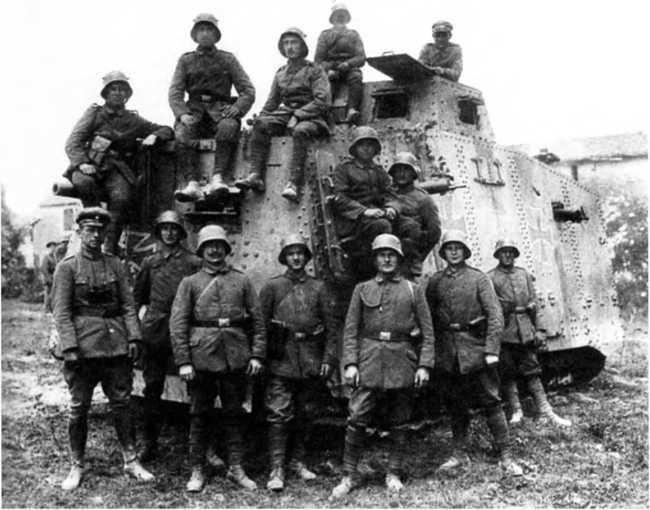 Экипаж танка A7V № 504 «Шнук» 2-го танкового «штурмового отделения». Танк — с корпусом «Крупп».