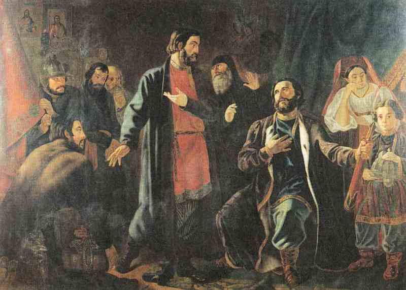 Дионисий, троицкий архимандрит, благословляет князя Пожарского и гражданина Минина на освобождение Москвы