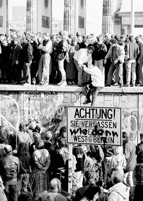 Государство сделало ответный ход в полночь 13 августа 1961 года, когда была возведена Берлинская стена, известная в коммунистических кругах как антифашистский оплот. Стена около 200 километров длиной окружала весь Западный Берлин. Кроме самой стены, были организованы внутренние барьеры в Восточной Германии, усиленные и охраняемые минными полями, охранными собаками и полицейскими, у которых имелась четкая инструкция стрелять на поражение. И все равно многие предпринимали попытки перебраться через Стену. Больше сотни восточных немцев погибли. Двадцать восемь лет спустя Стена все еще стояла, но режим, поддерживавший ее, пошатнулся. Лояльность граждан была серьезно подорвана тиранической политикой государства. Ее экономика казалась лишь бледной тенью Запада, сияющего на экранах телевизоров. Начало реформаторской деятельности президента Горбачева в Советском Союзе сопровождалось целой волной реформ в Восточной Европе. В начале 1989 года профсоюз «Солидарность» сформировал новое правительство в Польше. В то же время в Венгрии коммунистическая партия инициировала целый ряд реформ, открывающий границы с Австрией. Тогда же правительство Венгрии отказалось контролировать румын и восточных немцев, которые пытались ее пересечь. Больше половины миллиона восточных немцев смогли воспользоваться этим путем, до тех пор пока ГДР не наложила эмбарго на торговлю с Венгрией. Это спровоцировало еще одну волну граждан ГДР в посольства Западной Германии в Праге, Варшаве и Восточном Берлине. Они требовали политического убежища. В начале октября тысячи восточных немцев переместились на запад, и, отчаявшись, восточные немцы полностью закрыли свои границы. Жители Восточной Германии оказались перед нелегким выбором между верностью государству и правом голоса. В течение последующих месяцев, несмотря на десятилетия надзора и репрессий, подрывавших моральный дух, они выбрали право голоса. Протесты начались в Дрездене. Демонстрация на железнодорожной станции переросла в полномасштабный бунт. В Лейпциге 4 ноября очередная понедельничная демонстрация, организованной оппозицией и лютеранской церковью, переросла в стотысячное собрание во главе с Куртом Мазуром, дирижером городского оркестра. Решительно и мрачно, жители Лейпцига прошли по всему городу с акцией протеста. Через два дня, пока запаниковавшая коммунистическая партия совещалась по поводу регулировки движения, около полумиллиона горожан наводнили центр Восточного Берлина, чтобы оказать ей сопротивление. После целой череды событий, произошедших из-за различных недоразумений, некомпетентности и панических настроений, государственному деятелю ГДР Гюнтеру Шабовски пришлось дать пресс-конференцию и прокомментировать действия властей. Конференцию показывали по телевидению как на Западе, так и на Востоке. Это произошло 9 ноября в 6:53 вечера. Не сумев толком объяснить намерения властей, он ляпнул, что новые правила (которые должны были вводиться постепенно) начнут действовать сразу как в Восточном, так и Западном Берлине (в официальном документе этого также не планировалось). Но это уже не имело значения. Люди уже услышали, что границы открыты, и действовали соответственно этим новостям.