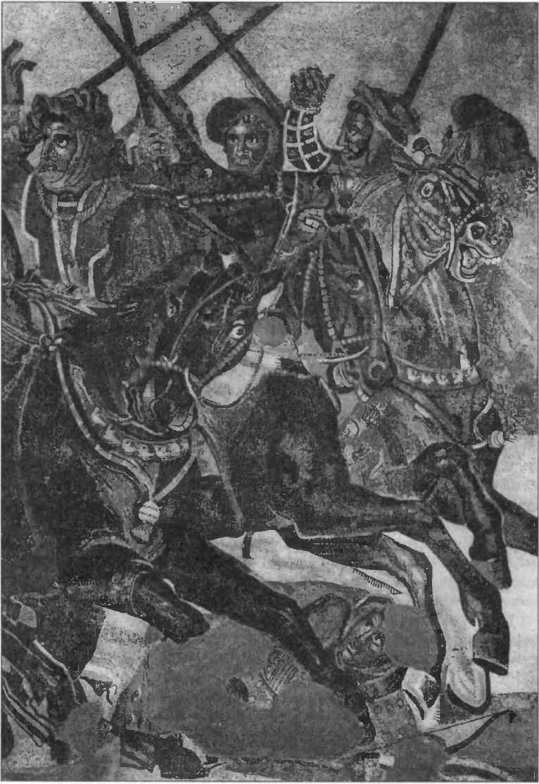 Вне всякого сомнения, мозаика колировала живописное произведение, возможно, то, о котором сообщает Плиний Старший: «Картина Филоксена из Эретрии была написана для Кассандра. Она изображала битву Александра с Дарием и была прекраснее других картин». Филоксен работал в конце IV в. до н.э., мозаика же, копирующая его картину, относится к I в. до н.э. — ко времени широчайшего распространения мозаичной техники по всему античному миру.