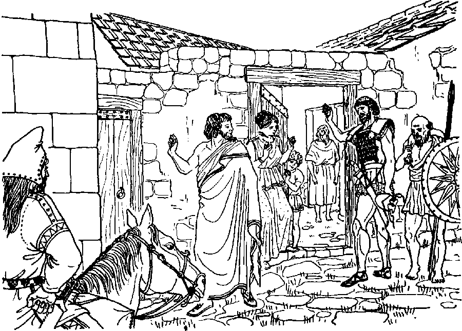 Уличная сцена в Ольвии. Рисунок М. В. Горелика