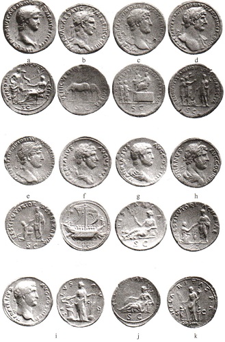 Изображения на монетах, иллюстрирующие реформы Нерона, Нервы и Адриана