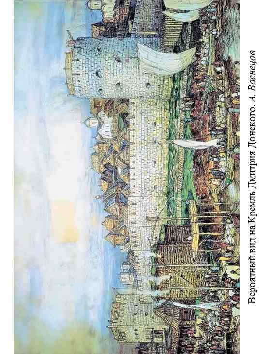 Мы мало что знаем о первом каменном Кремле – от него ничего не сохранилось. По данным археологии, известно лишь, что площадь цитадели (23 гектара) почти равнялась современной. Хрестоматийная картина Аполлинария Васнецова (с. 269) честно названа: «Вероятный вид на Кремль Дмитрия Донского».