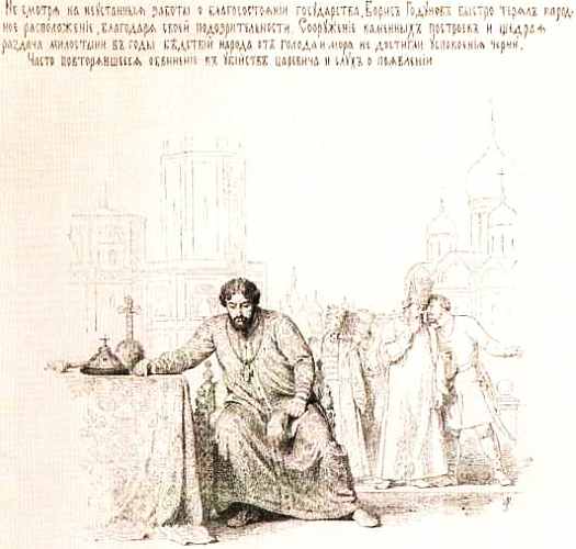 Скоропостижная смерть его поразила всех. Народу объявили о ней только на следующий день. По Москве стала ходить молва, будто Борис сам отравил себя ядом в припадке угрызений совести и отчаяния. Слух об отраве пошел от врачей-немцев, лечивших царя: лицо мертвого, изуродованное предсмертными судорогами и почернелое, казалось, подтверждало этот слух.