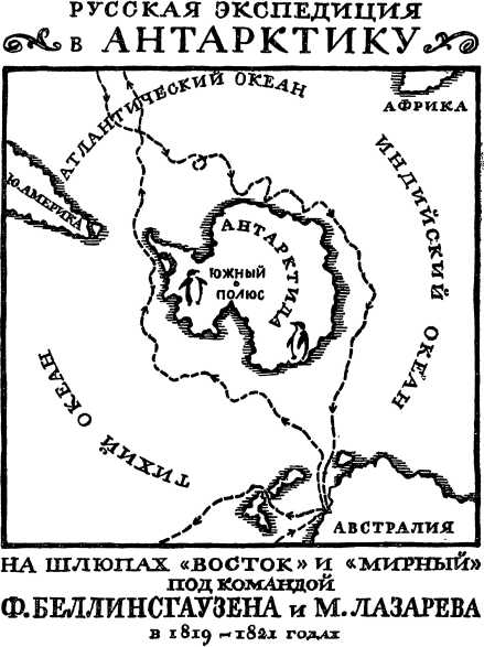 Так славные русские моряки, плавая среди грозных ледяных гор под высокими южными широтами, дважды с разных сторон подошли к таинственным берегам неизвестного материка, имя которому Антарктида. Они открыли последнюю, шестую часть света! Слава им!