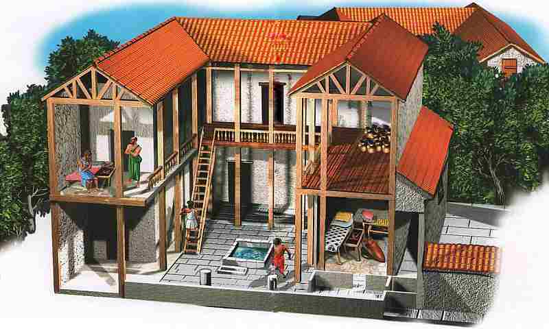 Мебель в домах была очень простой, чисто функциональной, как сказали бы теперь, без всяких излишеств. В каждом доме была кладовая, где хранились запасы продовольствия — зерна, масла, вина.