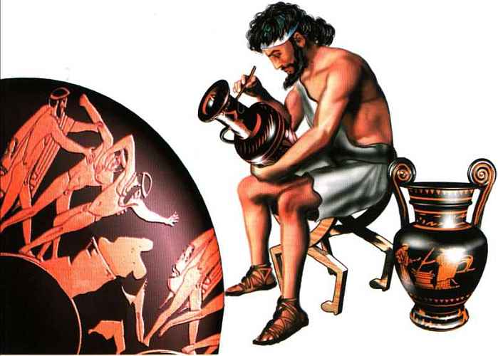 Услугами рабов пользовались и греческие ремесленники. Как правило, ремесленник владел одним-двумя рабами, помогавшими ему в работе. Труд был исключительно ручным, а использовавшиеся инструменты — очень простыми. Ремесленники одной профессии селились в одном районе. Так, в Афинах, как нам известно, был большой район, где жили и трудились около 200 гончаров и художников, расписывавших керамику.