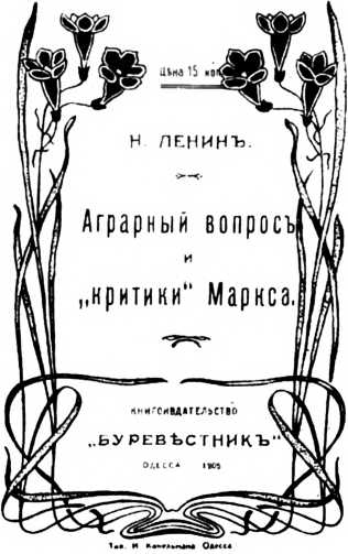 Обложка книги В. И. Ленина «Аграрный вопрос и «критики» Маркса», изданной в Одессе в 1905 г.