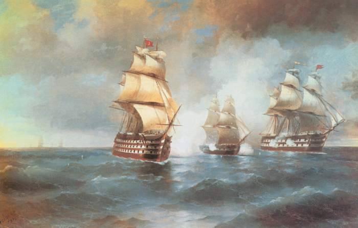 И. Айвазовский. «Бриг “Меркурий”, атакованный двумя турецкими кораблями»