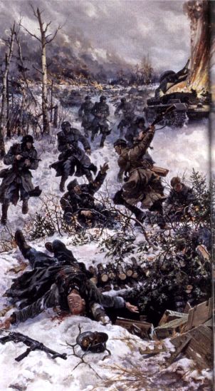 Но глубоко эшелонированная артиллерийская и противотанковая оборона и хорошо организованное взаимодействие всех родов войск не позволили противнику прорваться через боевые порядки 16-й армии. Медленно, но в полном порядке эта армия отводилась на заранее подготовленные и уже занятые артиллерией рубежи, где вновь ее части упорно дрались, отражая атаки гитлеровцев».