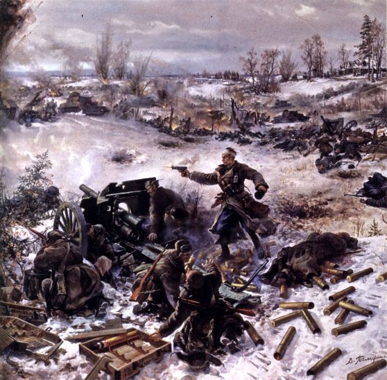 Артиллерия в битве за Москву под Волоколамском в декабре 1941 г. В. Памфилов