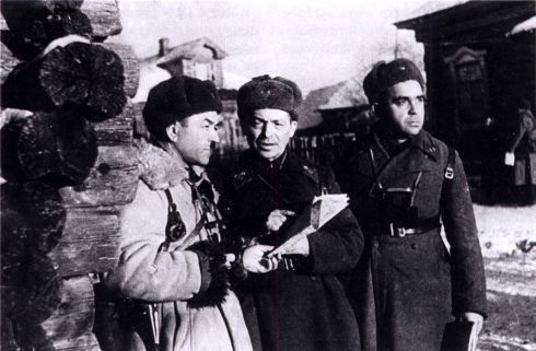 Панфилов, Серебряков и Егоров изучают обстановку местности. Московская обл., 1941 г.