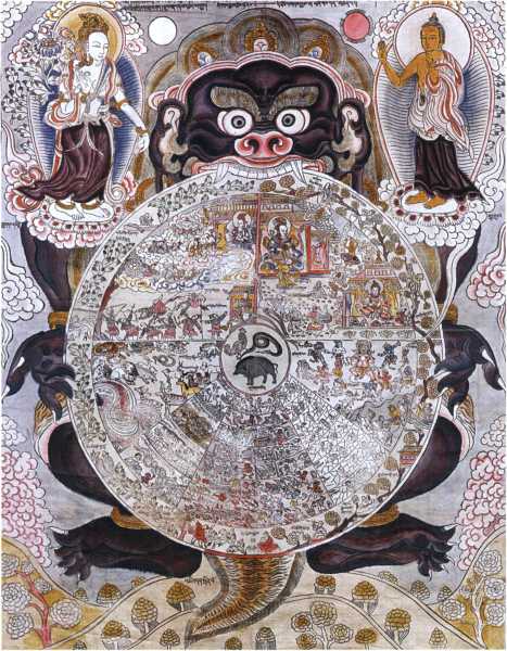 Легенда повествует, что впервые «Бхавачакра» — «Колесо мироздания» — было изображено ещё при жизни Будды Шакьямуни. Его возникновение традиция связывает с именем одного из ближайших учеников Будды — Маудгальяяны.
