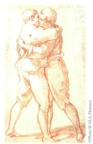 Бартоломео Чези. Целующиеся юноши. XVI век. Флоренция, галерея Уффици. Эпоха Возрождения вернула в моду отношения между мужчинами как наивысшую форму любви, которая только возможна среди людей. Эти юноши — весьма скромного происхождения — целуются в губы. Отношения между молодыми людьми, слишком бедными для того, чтобы позволить себе проституток, как правило, допускались, пока это не грозило скандалом.