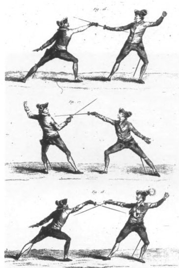 Фехтовальные позиции. Иллюстрация из «Энциклопедии» Дидро и д’Аламбера.