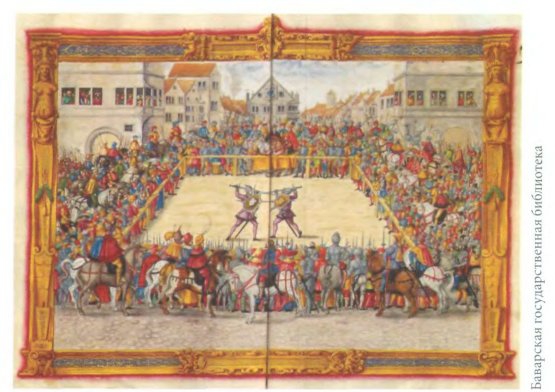 Йорг Бреу–младший, Паулюс Гектор Майр. Гравюра, изображающая поединок между Вильгельмом, маршалом Дорнбергским, и Теодором Хашенакером, случившийся в Аугсбурге в 1409 году. Этот поединок славился еще больше столетия: гравюра создана около 1544 года.