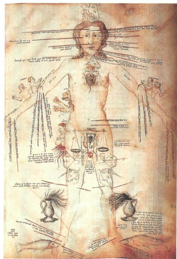 Изображение из манускрипта XIV века. Астрологические знаки соответствуют частям тела. В эпоху, называемую Новым временем, из научного сознания постепенно исчезает связь тела с астрологией и оккультными практиками. Тело начинают объяснять по–новому.