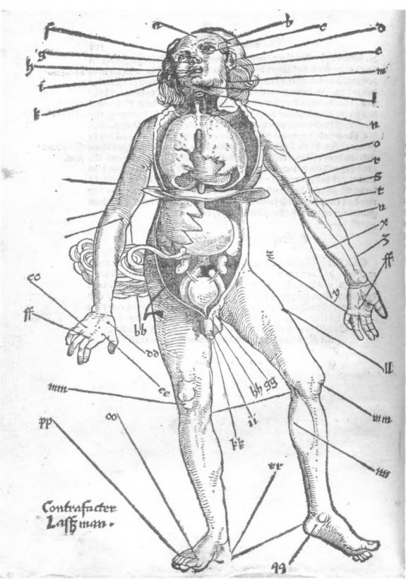 Точки для кровопускания. Из «Полевого руководства для обработки ран» Ханса фон Герсдорфа (1519). Кровопускание долгое время считалось чуть ли не панацеей. Ему приписывали очистительную функцию. Лишь в середине XVIII века медики начинают считать его «вредоносной затеей»; несмотря на это, кровопускание остается распространенной практикой и в XIX веке.