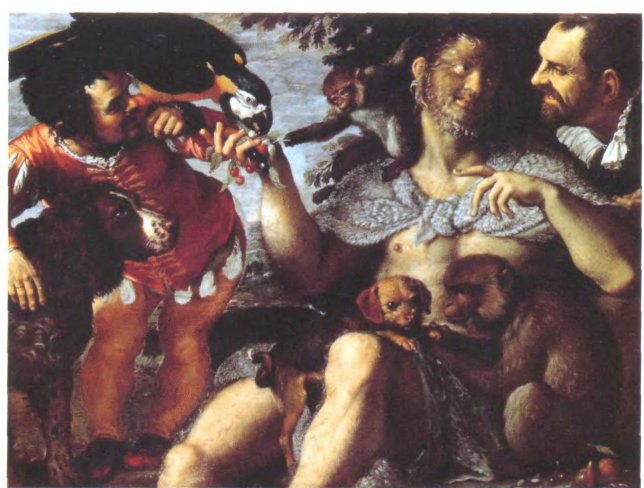 Агостино Карраччи. Тройной портрет. Ок. 1598. Неаполь, музей Каподимонте. На портрете изображены карлик Родомонт, «волосатый человек» Арриго Гонсалус и дурак Пьетро. Исполняя обязанности слуг и шутов, они были такими же типичными и престижными символами, что и экзотические животные.