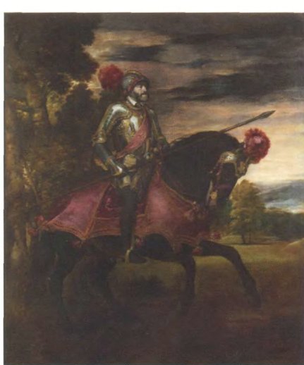 Тициан. Портрет Карла V. 1548. Мадрид, музей Прадо. Тициан изображает короля–воина в полном боевом облачении. В дальнейшем эта традиция уступит место парадным изображениям монархов в светской одежде и с регалиями.