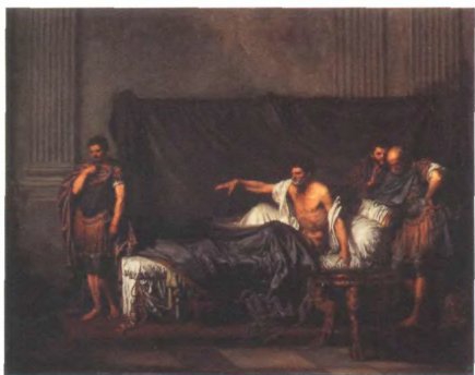 Жан–Батист Грёз. Септимий Север и Каракалла. 1769. Париж, Лувр. Картина была написана Грёзом как заявка на вступление в Королевскую академию живописи и скульптуры. Грёз рассчитывал на получение звания «исторического художника», но был принят лишь как «жанровый художник». Натурализм картины не произвел на академиков должного впечатления: по словам Дидро, Грёз «не сумел возвыситься до того преувеличения, которого требует живопись историческая».