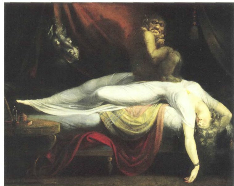 Иоганн Генрих Фюссли. Ночной кошмар. 1781. Детройт, Институт искусств. Это «шокирующее» полотно пользовалось немалым успехом. Оно маркировало новый интерес к иррациональному: как и Гойя, Фюссли исследовал «сон разума», рождающий чудовищ.