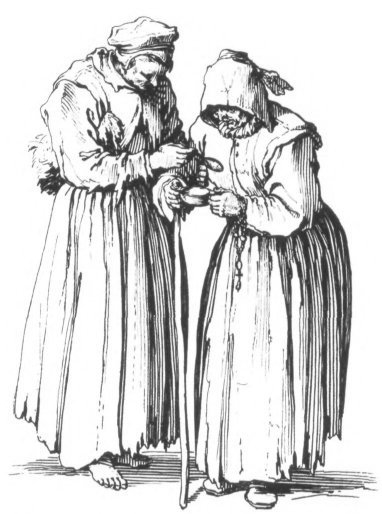 Жак Калло. Нищенки с чашкой и ложкой. 1635. Гравюра из книги «Callots Etchings».