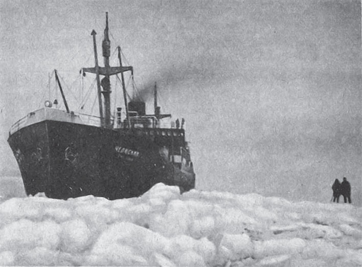 С кормы на лед прыгать ему было высоко, он побежал по палубе к носу, но был задавлен сорвавшимися с кормы бочками.