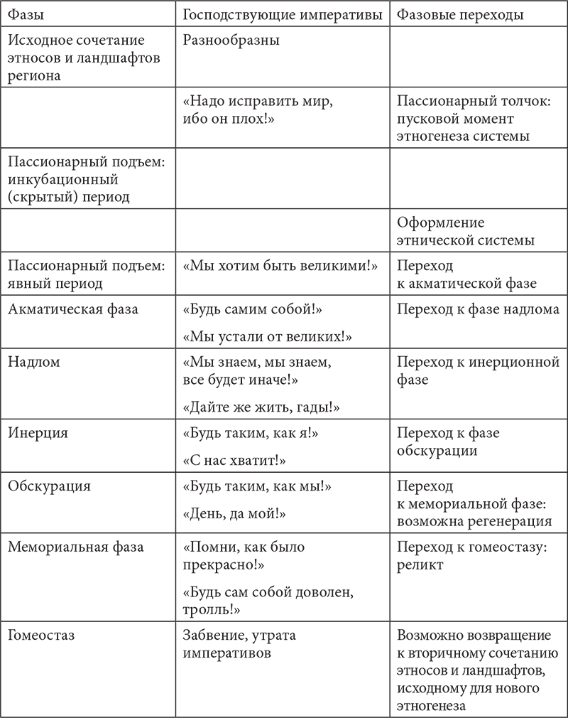 Табл. 5 представляет собой резюме, обобщающее содержание всей концепции этногенеза в его субстанционной части.