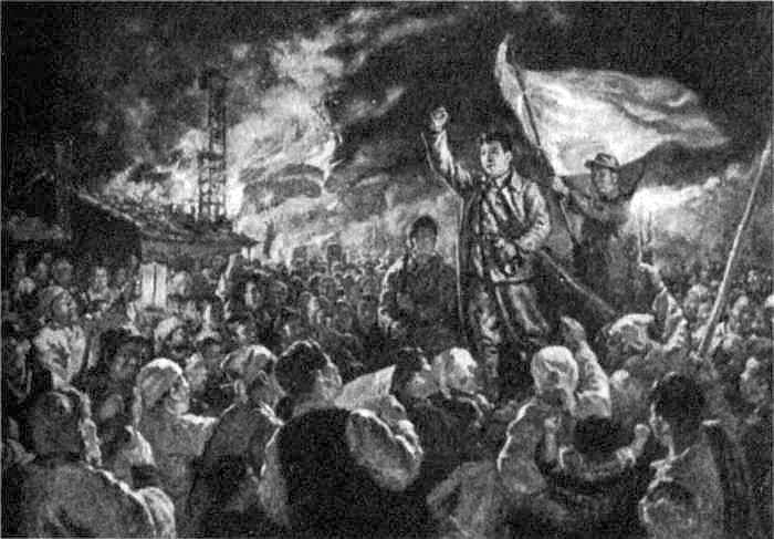 Рис. 56. «Факел Почхонбо» — картина северокорейского художника Чон Гванчхоля (начало 1950-х годов), воспевающая Ким Ир Сена как лидера вооруженной антияпонской борьбы.