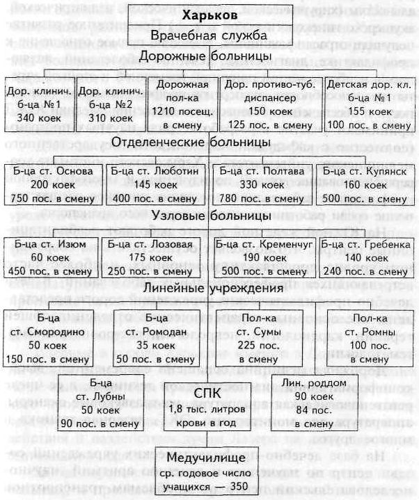 До 1917 года Южная дорога располагала 226 койками, в основном в приемных покоях, где работало 27 врачей. Но специализированной медицинской помощи не было.