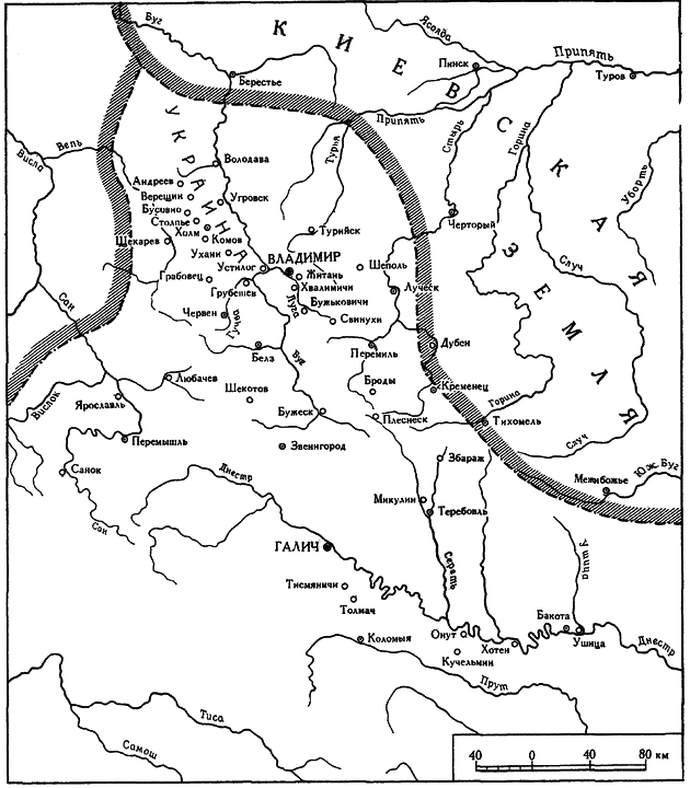 Плодородная почва, мягкий климат, относительная безопасность от кочевников сделали благодатную землю Волыни одной из богатейших на Руси. Здесь очень интенсивно развиваются феодальные отношения и складывается сильный боярский слой. Здесь возникают такие города, как Перемышль, Луцк, Теребовль, Червен, Холм, Берестье, Дрогичин. Долгое время мы ничего не находим в летописях о Галиче. Но в XII в. Галич из небольшого удельного городка второстепенных князей быстро превращается в столицу значительного княжества, возникшего на землях таких славянских племен, как Белые Хорваты, Тиверцы и Уличи. На рубеже XII и XIII столетий Роман Мстиславич Волынский объединил Галицкую землю и Волынь в одно большое государство, пережившее татаро-монгольское нашествие и просуществовавшее до XIV в. Такова схема истории Западной Руси.