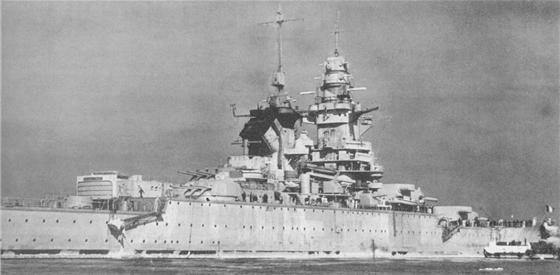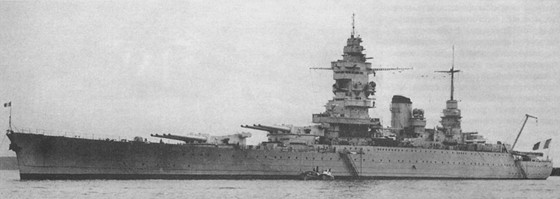 Вверху: линкор «Дюнкерк» в 1938 г.