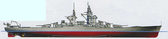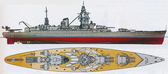 Вооружение: 8 380-мм и 15 (позже 9) 152-мм орудий, 12 100-мм зенитных пушек, 1637-мм автоматов, 8 пулеметов, 3 гидросамолета.