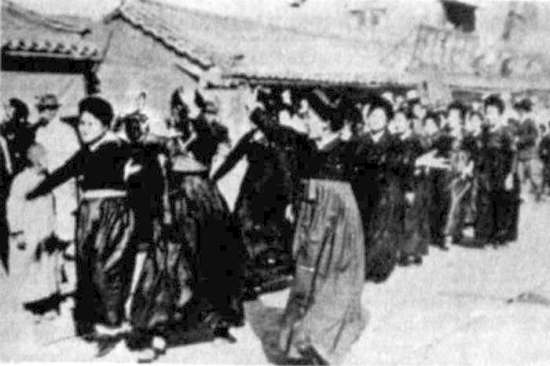 Рис. 37. 1 марта 1919 года. На демонстрацию вышли даже женщины (в первую очередь, учащаяся молодежь), традиционно отстраненные в старой Корее от политической жизни.