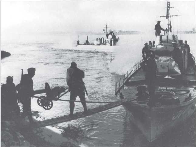 Бронекатера проекта 1124 Азовской военной флотилии во время проведения Керченско-Эльтигенской десантной операции. На верхнем фото запечатлен БКА-121 (бывший БКА-15).
