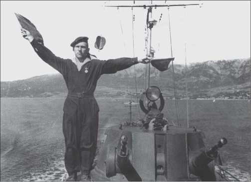 Бронекатер у берегов Ялты. На первом плане хорошо видна 12,7-мм спаренная пулеметная башенная установка ДШКМ-2БУ.