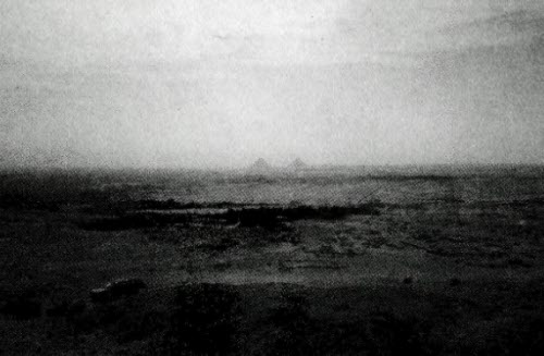 Рис. 61. Абу-Роаш. Вид с вершины холма пирамид. Вдалеке видны пирамиды Гизы, а еще дальше — пирамиды Абу-Сира. 1997 г. Фото автора.