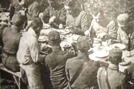 Сечевые стрельцы за обедом. Вопрос о переходе галичан к белым был тоже решен под выпивку с закуской