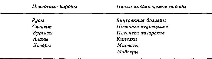 Получив известное количество ориентиров разной степени надежности, мы можем приступить к итоговому размещению на географической карте народов, описанных в «Худуд ал-Алем». Народы Восточной Европы предстают перед нами в двух категориях: местоположение одних нам более или менее известно, а размещение других народов (находившихся в движении) на данный отрезок времени нам неизвестно.