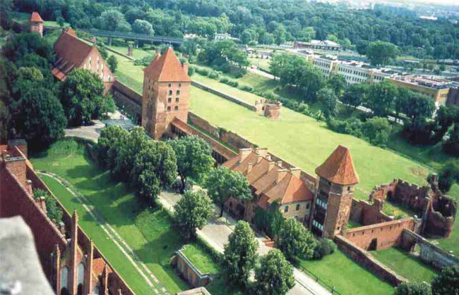 Рассказ о Тевтонском ордене был бы неполным без описания его столицы. Главная функция любого замка — оборонительная. Исключительно продуманная система стен, башен, ворот, каналов и мостов Мальборкского замка позволяла гарнизону из нескольких сотен человек обороняться от армии любой численности. Внутри замка находился стратегический запас зерна. Продуманная система вентиляции и другие ухищрения обеспечивали его длительное хранение. Несколько колодцев и каналы обеспечивали гарнизон питьевой водой.