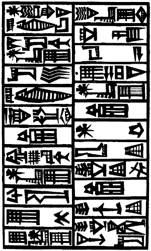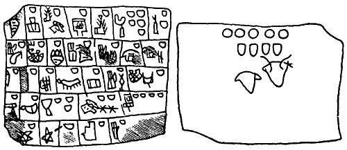 Рис. 92. Древняя табличка из Урука, написанная рисуночным письмом.
