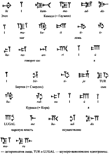 С дешифровкой древнеперсидской части надписи был получен ключ и к чтению двух остальных.