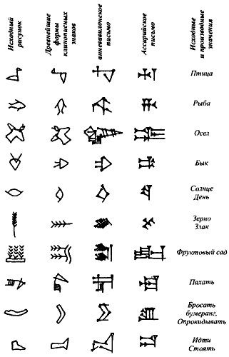 Рис. 99. Древнейшие идеографические формы клинописных знаков.