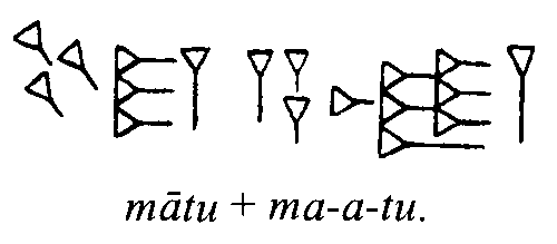 Теперь уже, если, например, хотели, чтобы написанное соответствующим знаком (рис. 51 б) слово «страна», m?tu, читалось именно так, а не иначе (и исключалось бы всякое сомнение в правильности такого чтения), то его писали смешанно, то есть к идеограмме подставляли еще и фонетическое написание: